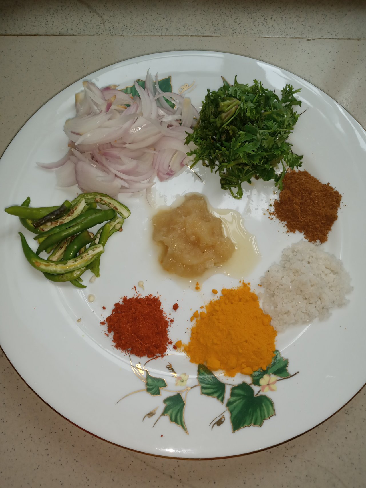 - এরপর আমি চুলায় আরেকটি পাতিল বসালাম। তারপর এরমধ্যে পরিমাণমতো তেল দিয়ে তেলের মধ্যে পেঁয়াজ কুঁচি কাঁচামরিচ দিয়ে ভালো করে নেড়ে চেড়ে একটু ভেজে নিলাম।