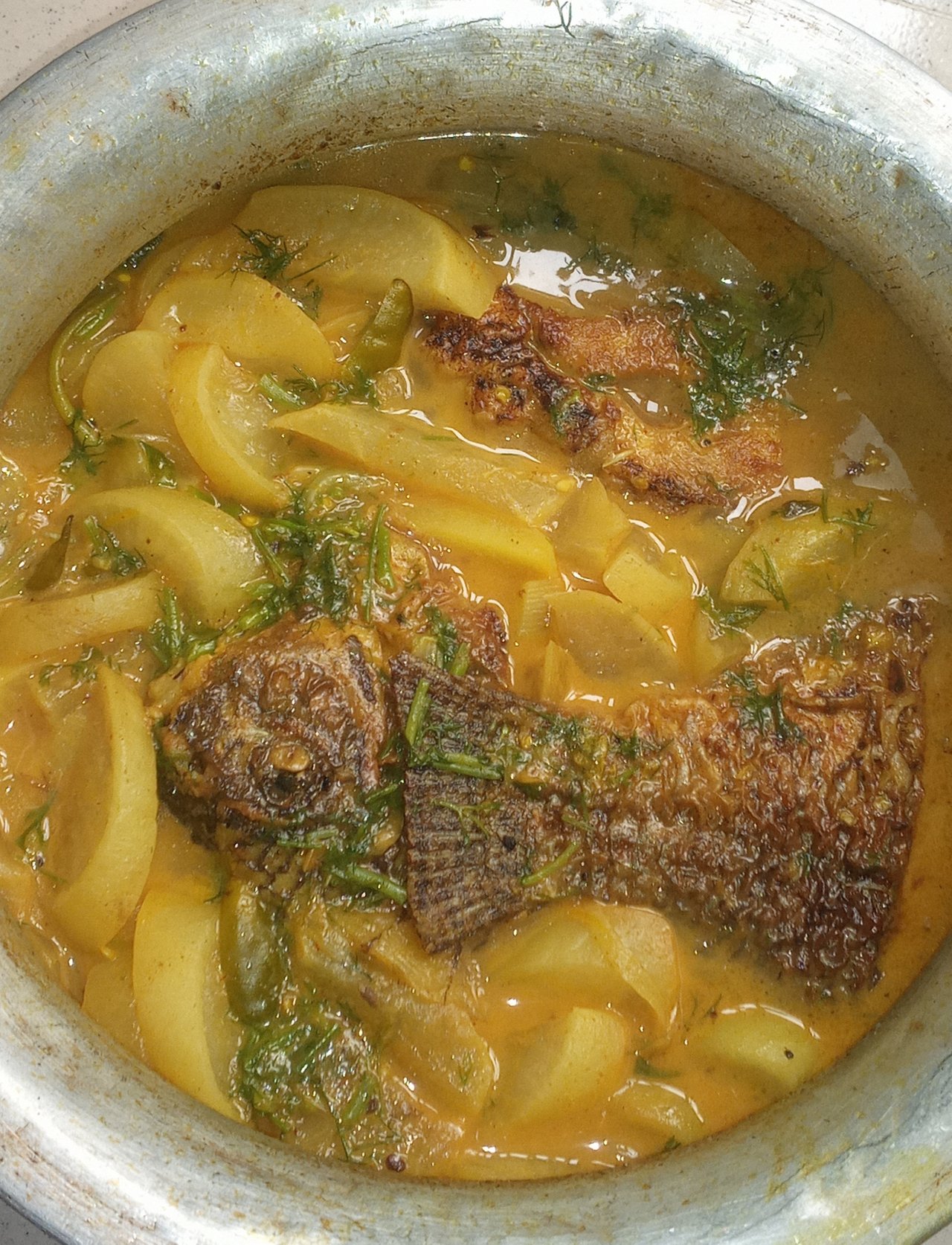 - কিছুক্ষণ পর দেখলাম তরকারিটা হয়ে গেছে তারপর চুলা বন্ধ করে চুলা থেকে নামিয়ে নিলাম। এভাবে খুব সহজে তৈরি হয়ে গেল মুলা দিয়ে তেলাপিয়া মাছের মজাদার রেসিপি।
