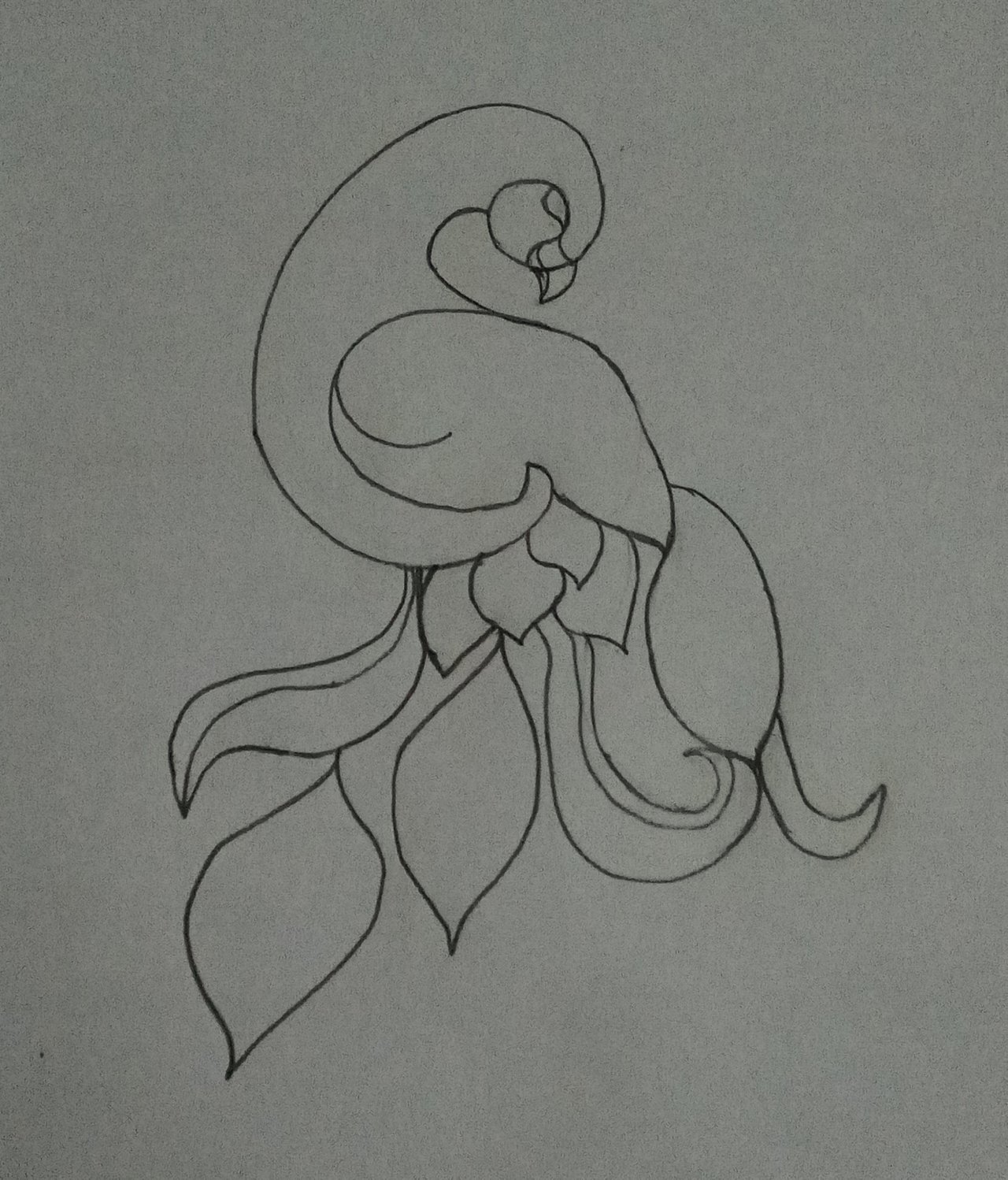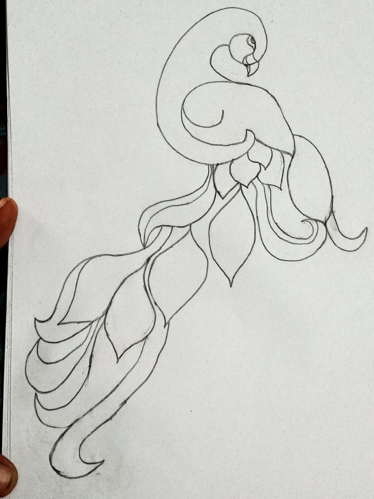 প্রথমে আমি একটি সাদা কাগজ নেই তারপর পেন্সিল দিয়ে ময়ূরের মাথার ঠোট এবং শরীরের কিছুটা অংশ আর্ট করলাম।