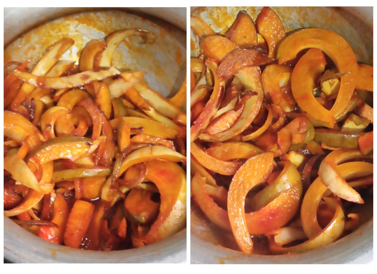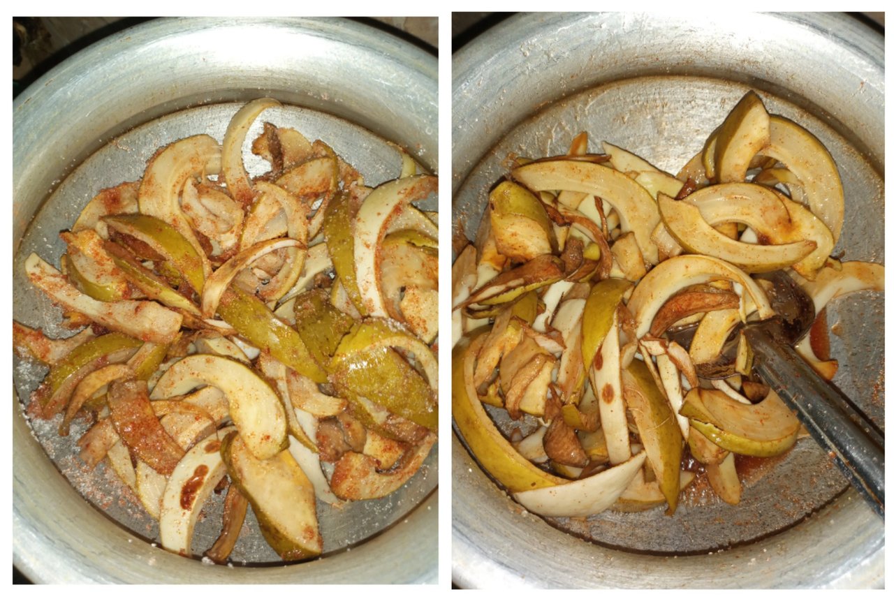 - তারপর আরো কিছুক্ষন নেড়েচেড়ে আচারটা ভেজে নিলাম।