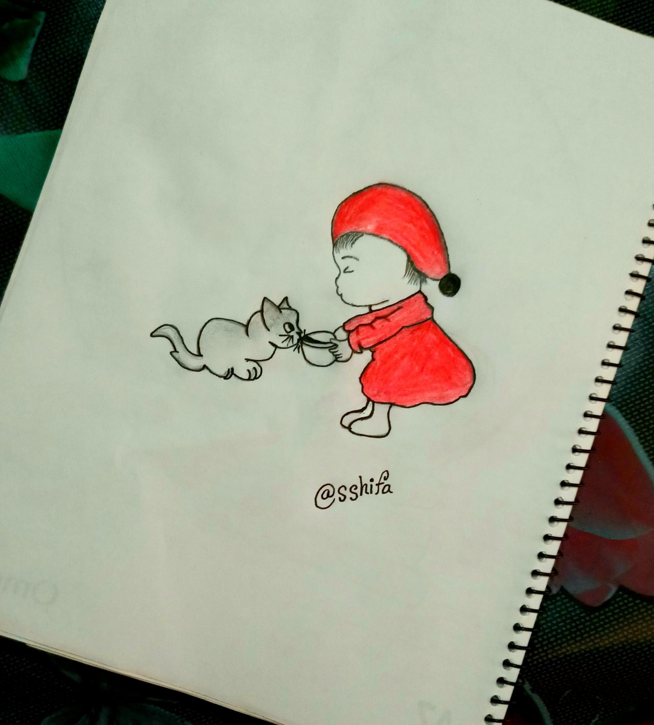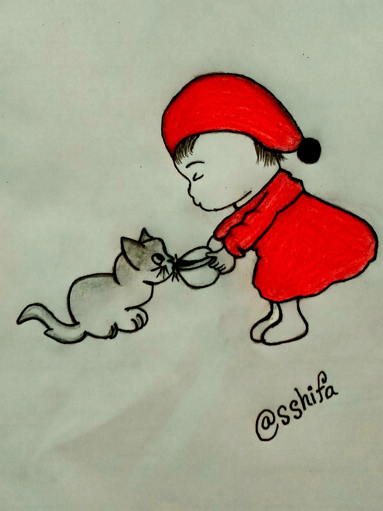 "আসসালামু আলাইকুম" সবাই কেমন আছেন? নিশ্চয় আল্লাহর অশেষ রহমতে সবাই খুব ভালো এবং সুস্থ আছেন। আমিও আল্লাহর রহমতে ভালোই আছি। আজকে আমি আরো একটি নতুন আর্ট নিয়ে আপনাদের মাঝে হাজির হলাম। আজকে আমি একটি ছোট মেয়ে বাটিতে করে বিড়ালছানাকে দুধ খাওয়ানো চিত্রাংকন করেছি। আশা করি আপনাদের কাছে ভালো লাগবে। এই আর্টের প্রত্যেকটি ধাপ আপনাদের সাথে শেয়ার করছি। তাহলে চলুন শুরু করা যাক।