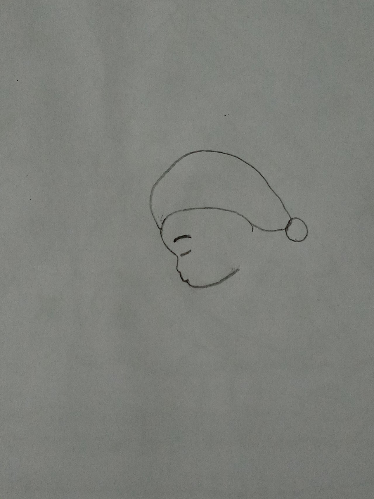- প্রথমে আমি একটি সাদা কাগজ নেই তারপর পেন্সিল দিয়ে ছোট মেয়েটির মাথার উপরের টুপিটা আর্ট করলাম।