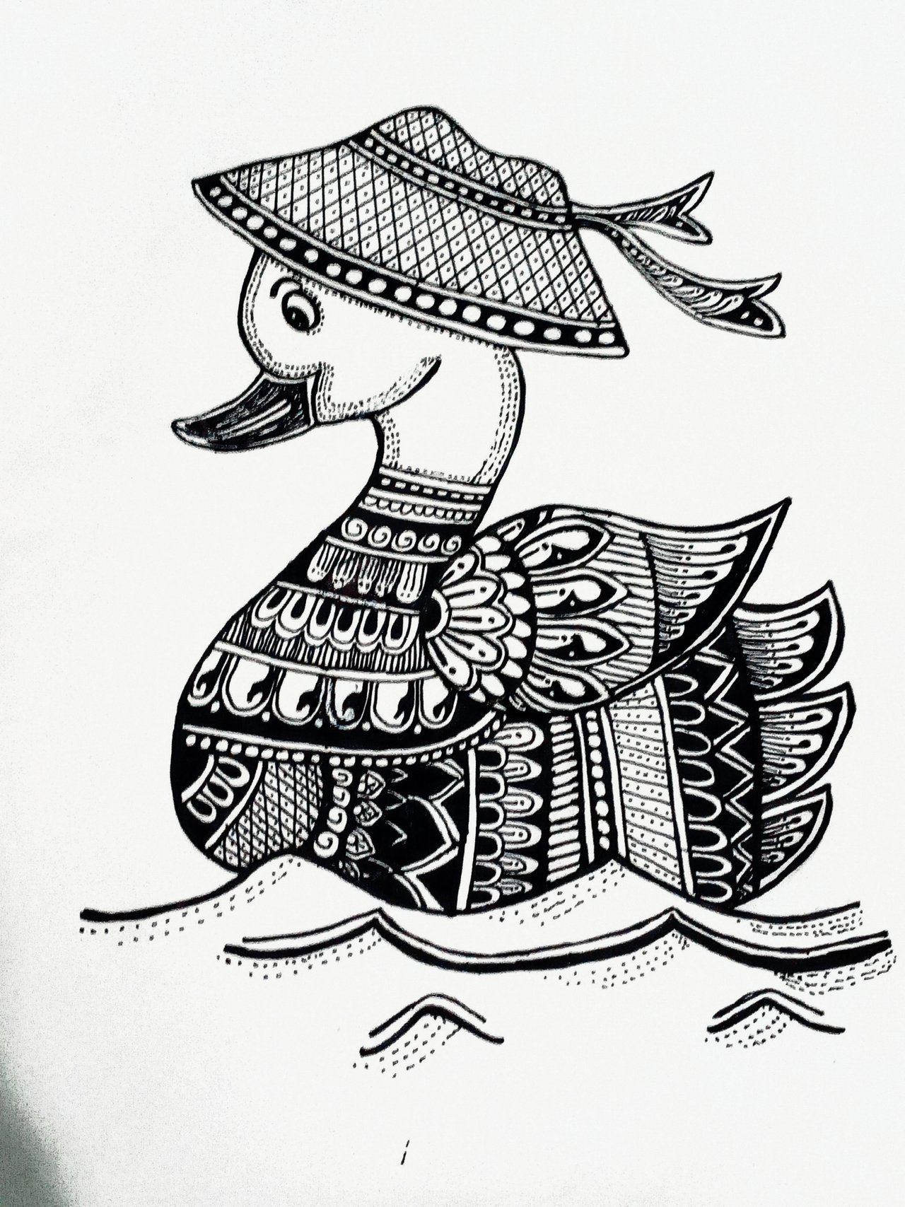 তারপর হাঁসের পাখনার মধ্যে সুন্দর করে আরও কিছু ডিজাইন করলাম এবং হাঁসের লেজের অংশে কিছু ডিজাইন করে পুরো হাঁসটির আর্ট শেষ করলাম।
