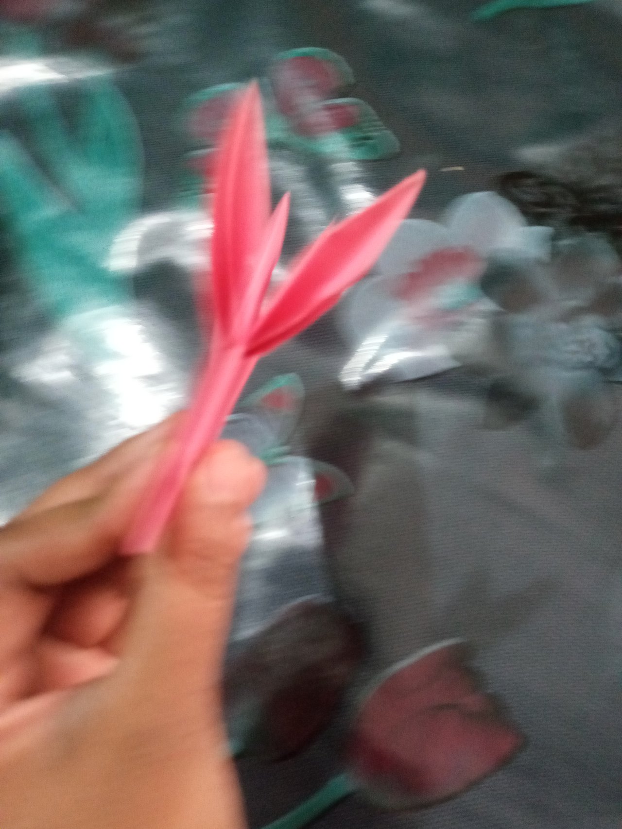 - প্রথমে আমি রঙিন কাগজ গুলো কোনাকোনিভাবে ভাজ করে তারপর নিচের বাড়তি অংশটা কেটে কাগজগুলো সমান করে নিলাম।