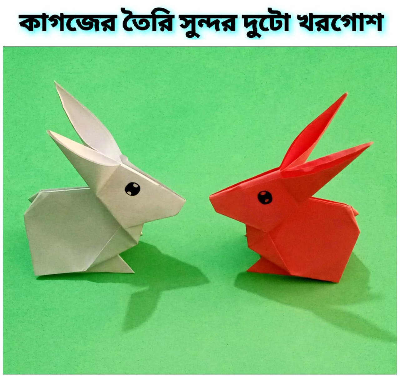 - আর এই ভাবেই আমি কাগজ দিয়ে দুটো সুন্দর খরগোশ তৈরি করে নিলাম।