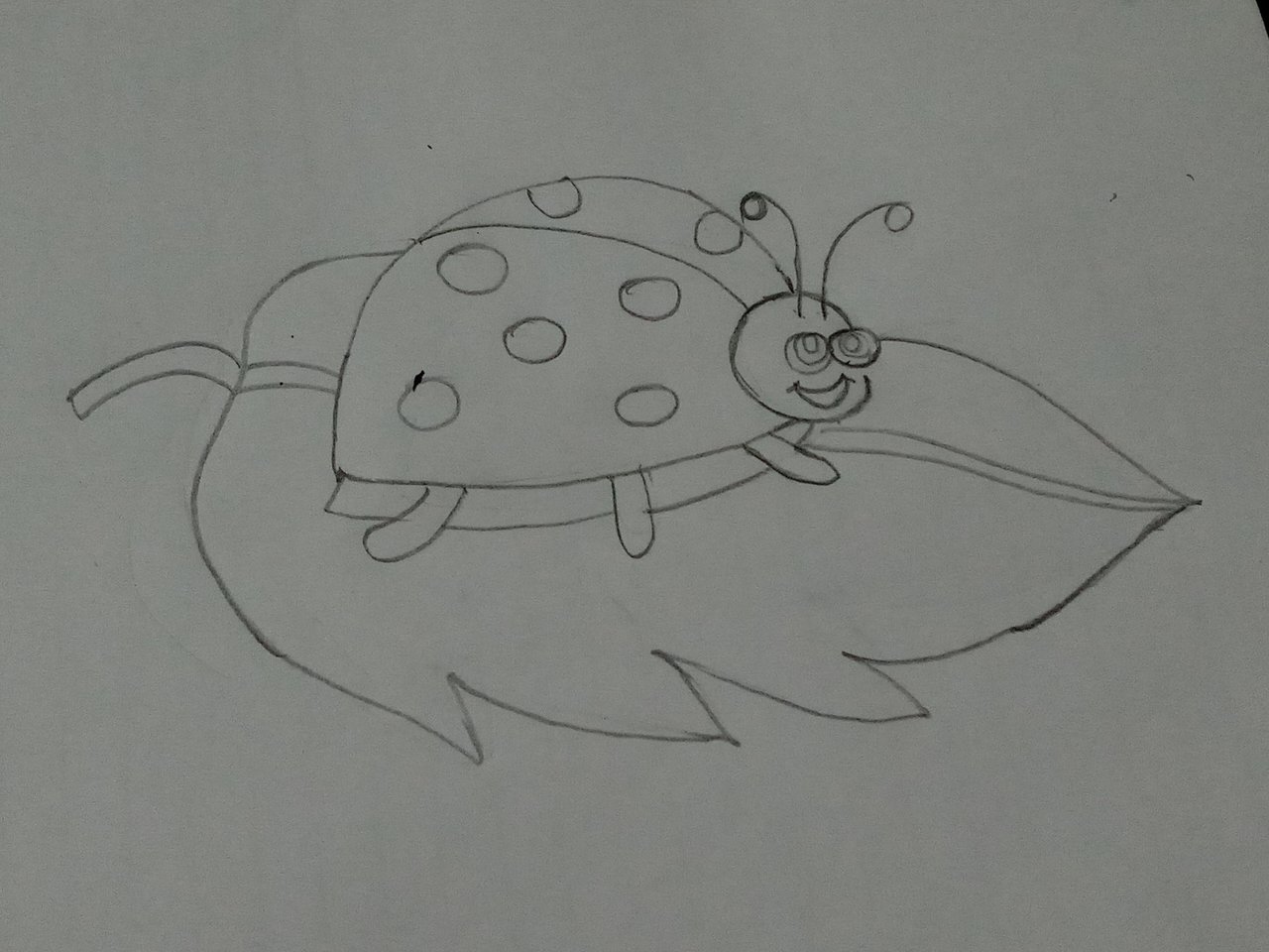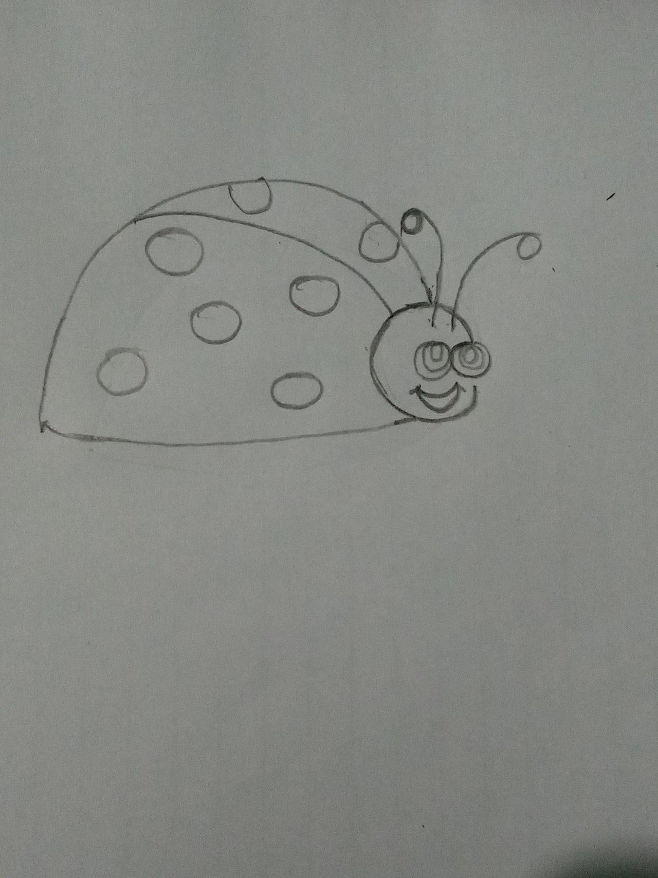 - এরপর আমি পোকাটির চোখ এবং মুখ আর্ট করলাম। এরপর মাথার ওপরে দুটো এন্টিনা আর্ট করলাম। তারপর পোকাটির শরীরের মধ্যে কিছু গোল গোল দাগ দিয়ে দিলাম।