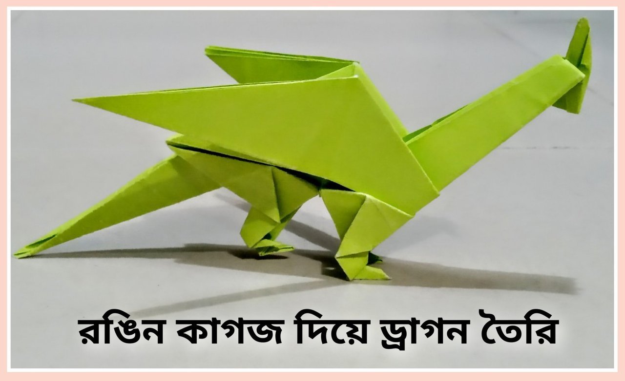 - রঙিন কাগজ দিয়ে ড্রাগন তৈরি। রঙিন কাগজের এরকম অরিগামি গুলো তৈরি করতে অনেকগুলো ভাজ দিয়ে করতে হয়। ভাঁজ গুলো একটু এদিক থেকে সেদিক হলে পুরোটা নষ্ট হয়ে যায়। তাই গুলো খুব সাবধানে দিতে হয়। কাগজ দিয়ে ড্রাগনটি তৈরি করার পর আমার কাছে খুবই ভালো লেগেছে।