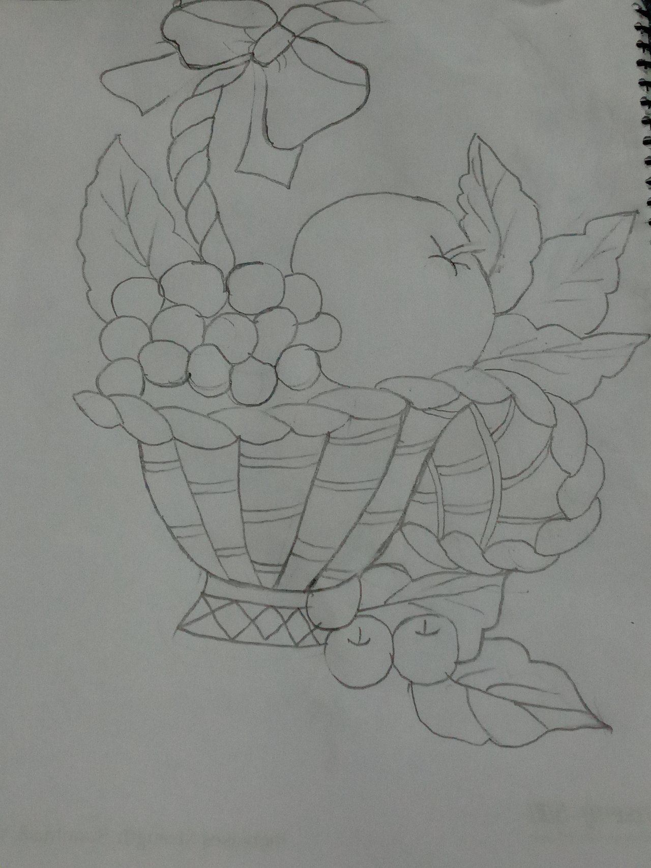 - প্রথমে আমি একটি সাদা কাগজ নিয়ে তারপর পেন্সিল দিয়ে ফলের ঝুড়ির কিছুটা অংশ আর্ট করে নিলাম।
