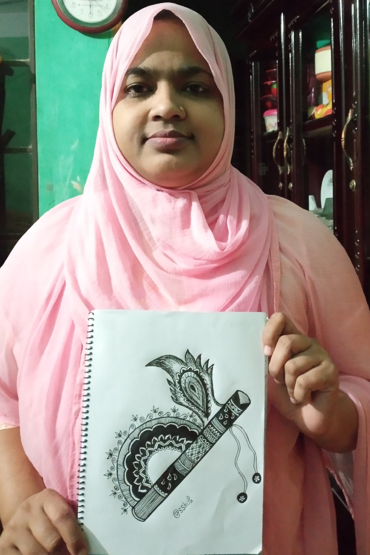 "আসসালামু আলাইকুম" সবাই কেমন আছেন? নিশ্চয় আল্লাহর অশেষ রহমতে সবাই খুব ভাল এবং সুস্থ আছেন। আমিও আল্লাহর রহমতে ভালই আছি। আজকে আমি আরো একটি নতুন আর্ট নিয়ে আপনাদের মাঝে হাজির হলাম। আজকে আমি একটি বাঁশির মান্ডালা আর্ট করেছি। আশা করি আজকের আর্ট আপনাদের কাছে ভালো লাগবে। এই আর্টের প্রত্যেকটি স্টেপ আপনাদের সাথে শেয়ার করছি। তাহলে চলুন শুরু করা যাক।