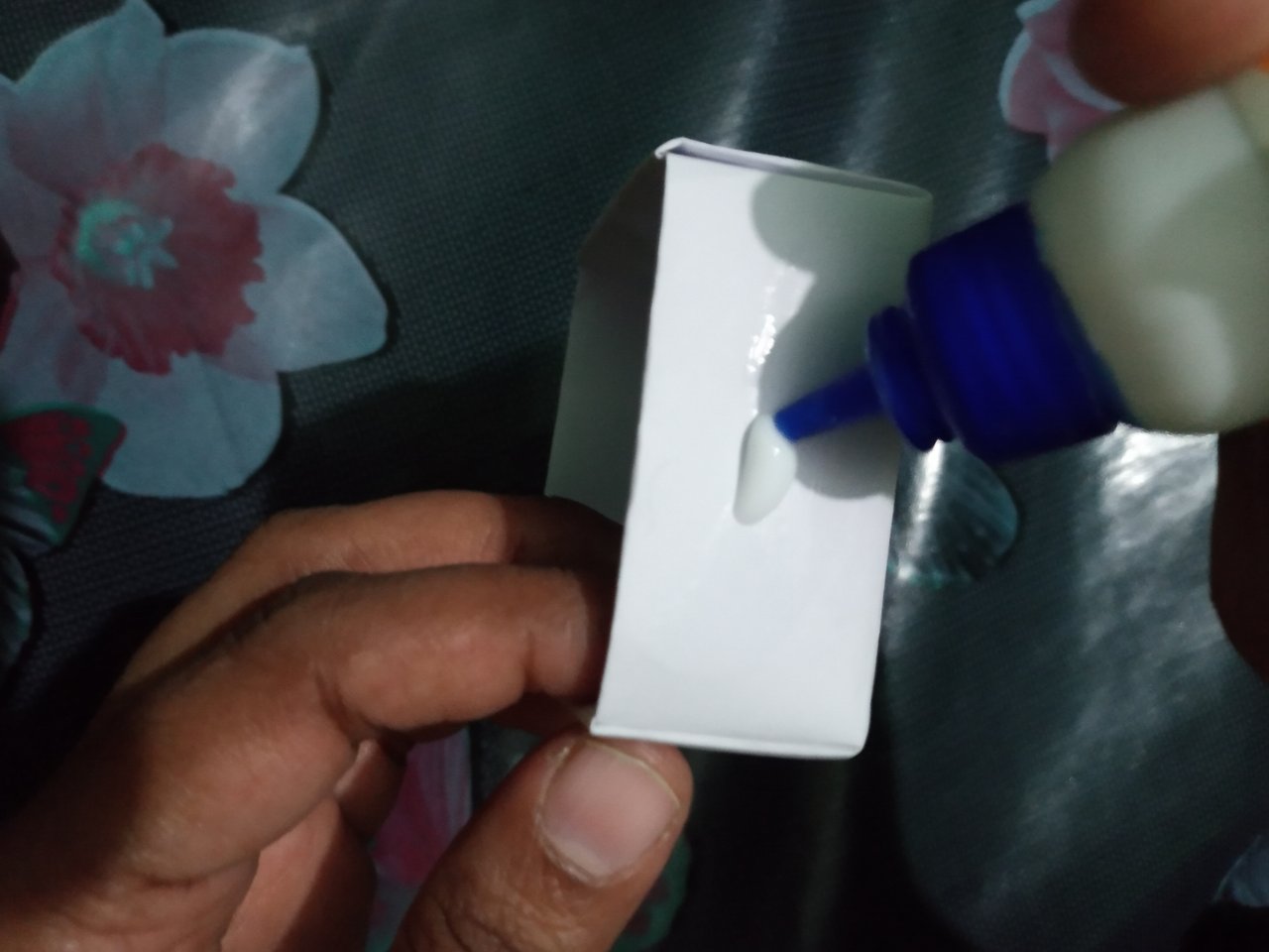 - এরপর কাগজের উপর এবং নিচের দিকে হাল্কা একটু ভাজ দিয়ে নিলাম। তারপর কাগজটির একপাশ বক্সের সাথে আঠা দিয়ে লাগিয়ে দিলাম।
