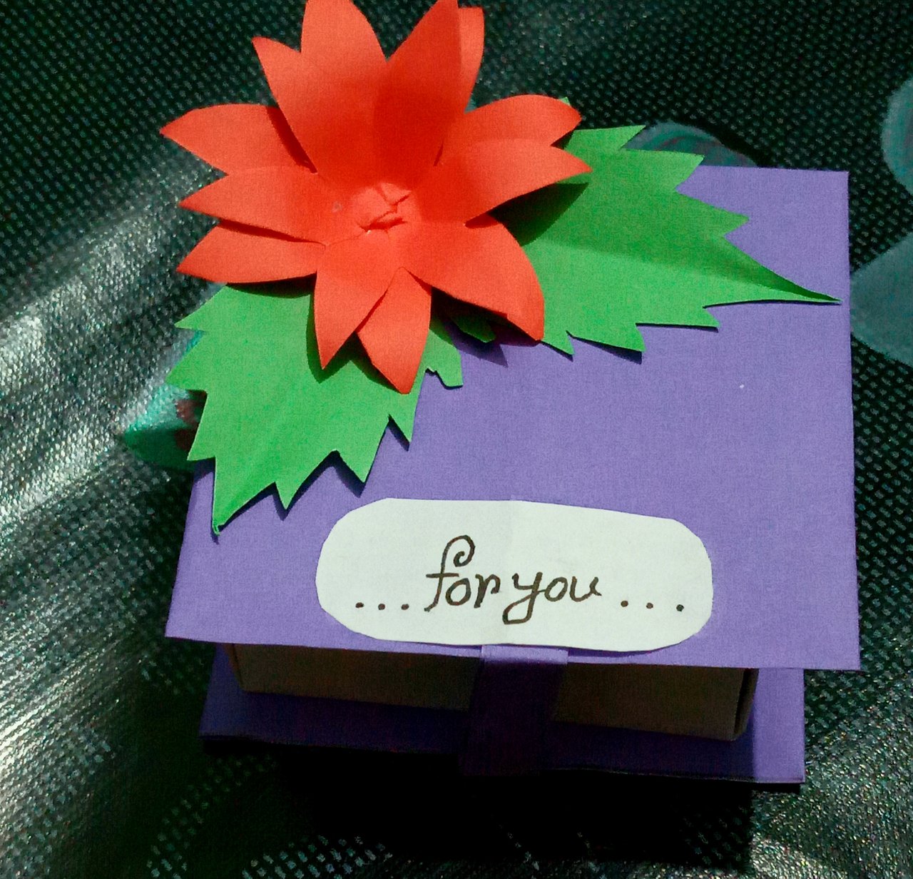 - এভাবেই আমি সুন্দর করে রঙিন কাগজ দিয়ে গিফট বক্সটি তৈরী করে নিলাম। তারপর গিফট বক্স এর ভিতর কিছু চকোবিন দিয়ে গিফট বক্সটি বন্ধ করে দিলাম।