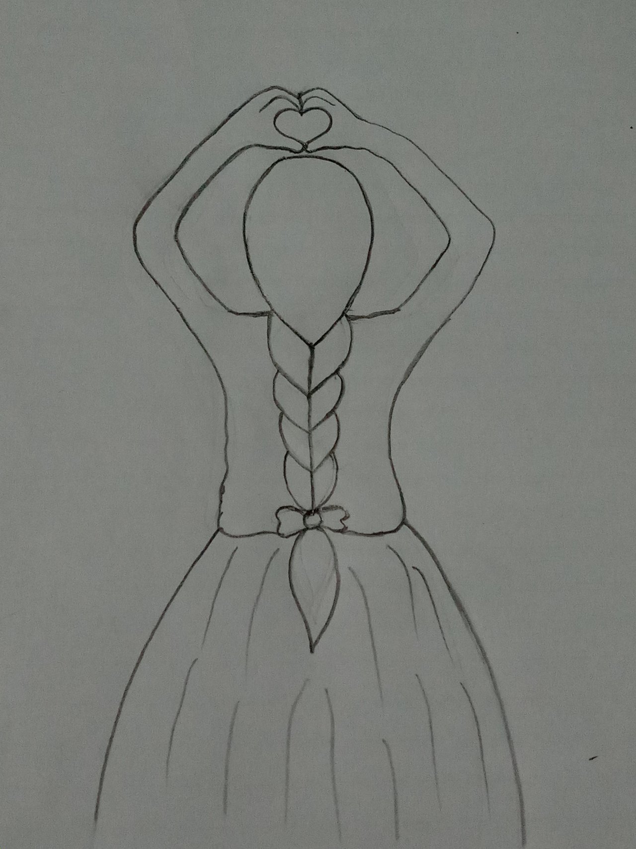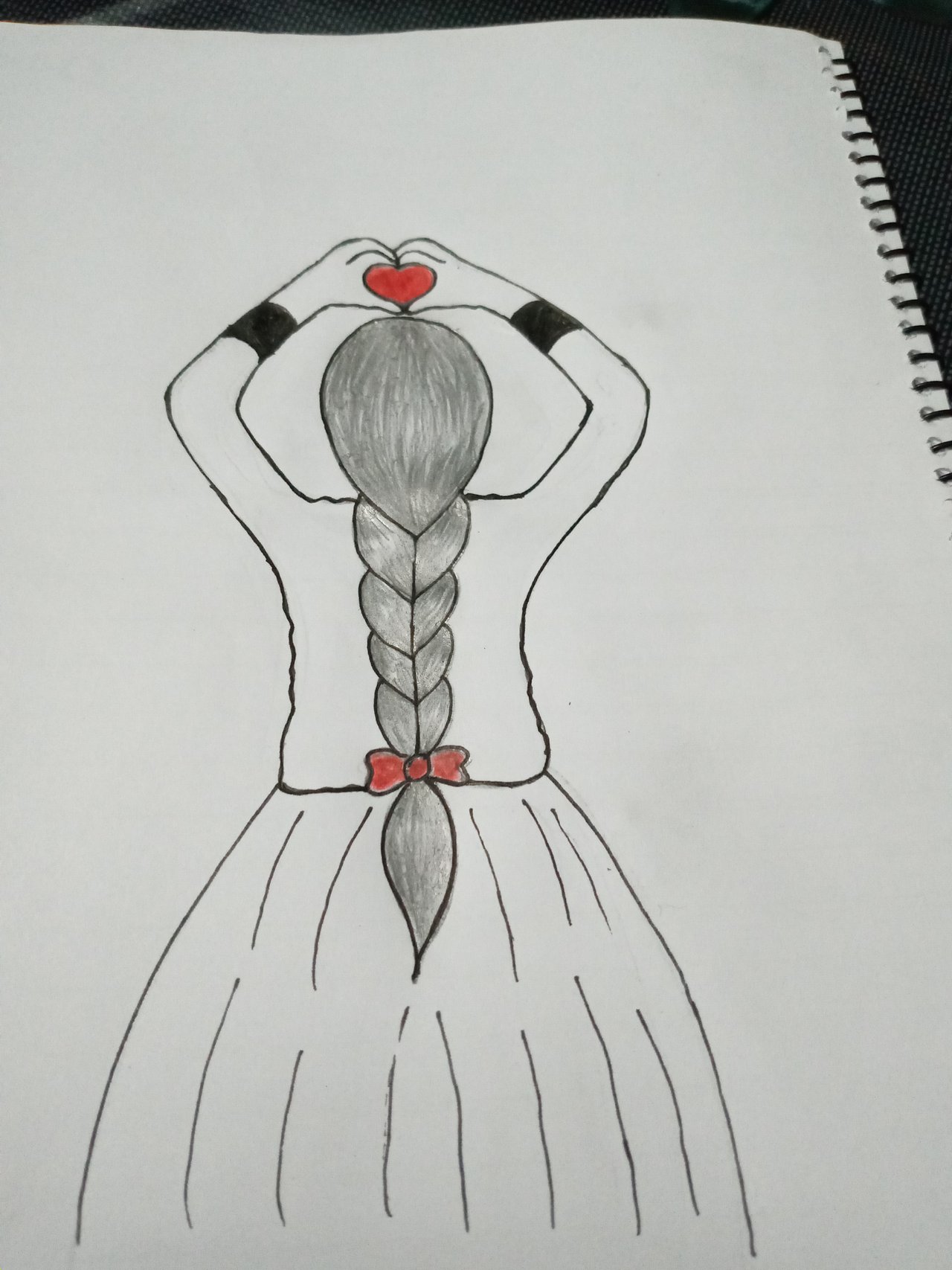 - প্রথমে আমি একটি সাদা কাগজ নেই তারপর পেন্সিল দিয়ে মেয়েটির চুলের বেনি আর্ট করে নিলাম।
