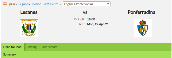 b) Leganes / First Goal 19 minutes