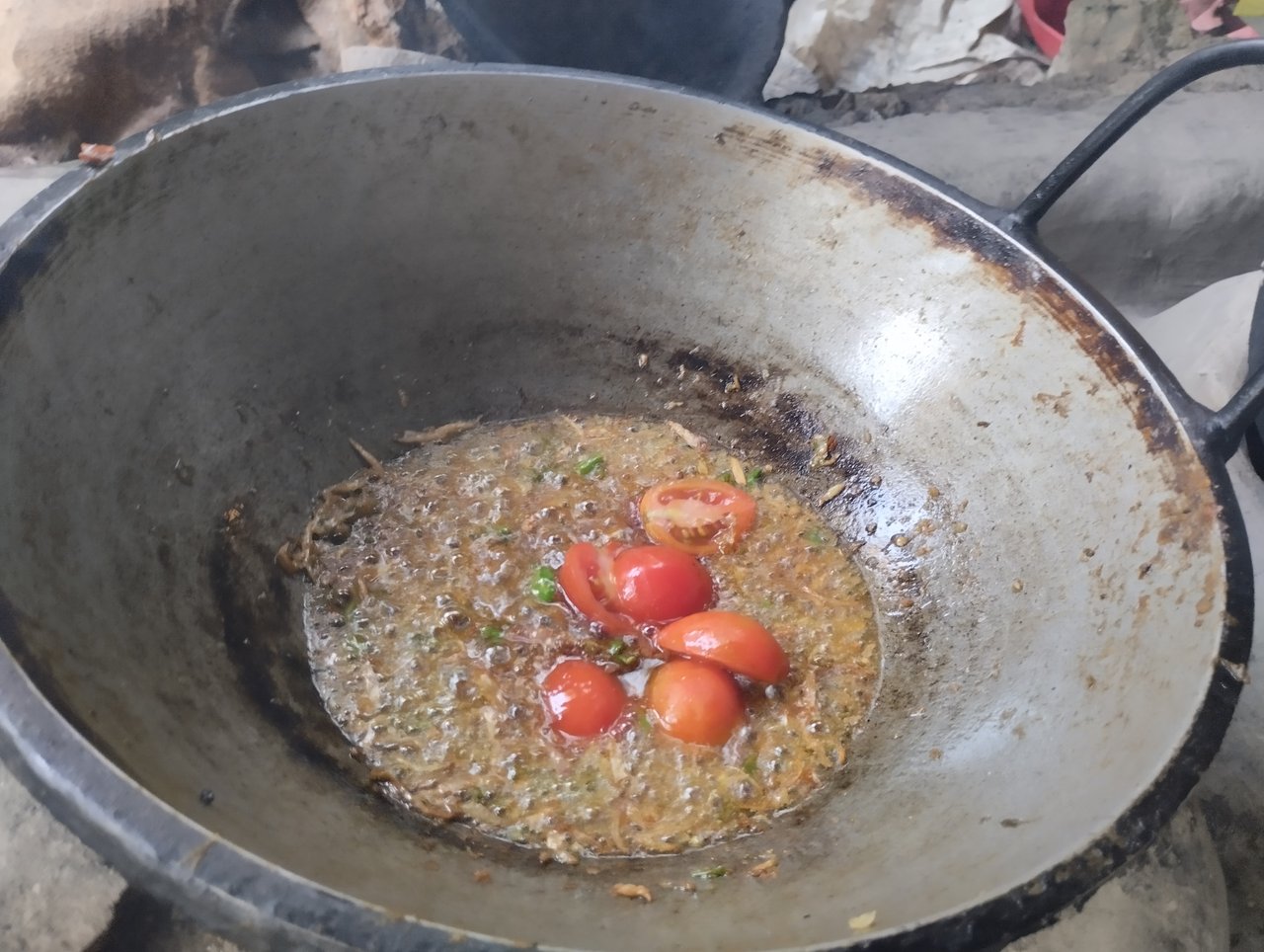 এরপর এতে ১ চামুচ শুকনো মরিচের গুঁড়ো দিলাম ভালো কালারের জন্য।এরপর এতে কেটে রাখা টমেটো দিয়ে দিলাম ও এগুলো একটু ভেজে নিলাম।দেয়ার পর একটু পানি দিয়ে দিলাম। |