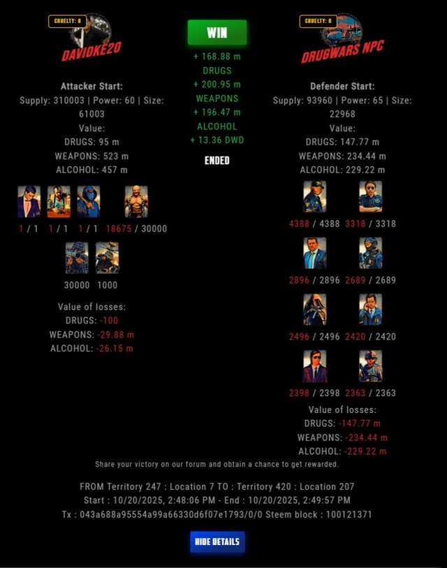 Check my latest fight ! davidke20 vs The Govermentdavidke20 (74)in DrugWars • 5 days ago #drugwars-fight #gaming #fight #dw