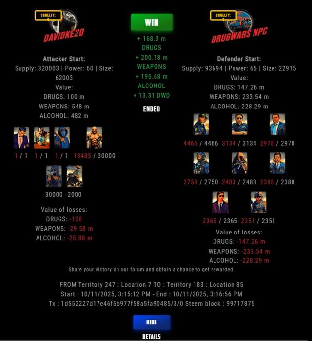 Check my latest fight ! davidke20 vs The Govermentdavidke20 (74)in DrugWars • 2 days ago #drugwars-fight #gaming #fight #dw