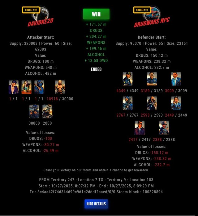 Check my latest fight ! davidke20 vs The Govermentdavidke20 (74)in DrugWars • 5 days ago #drugwars-fight #gaming #fight #dw
