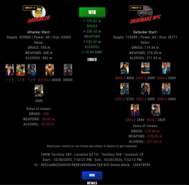Check my latest fight ! davidke20 vs The Govermentdavidke20 (74)in DrugWars • 9 days ago #drugwars-fight #gaming #fight #dw