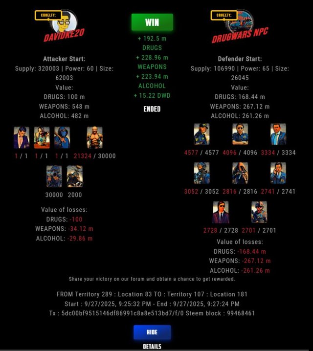 Check my latest fight ! davidke20 vs The Govermentdavidke20 (74)in DrugWars • 22 days ago #drugwars-fight #gaming #fight #dw