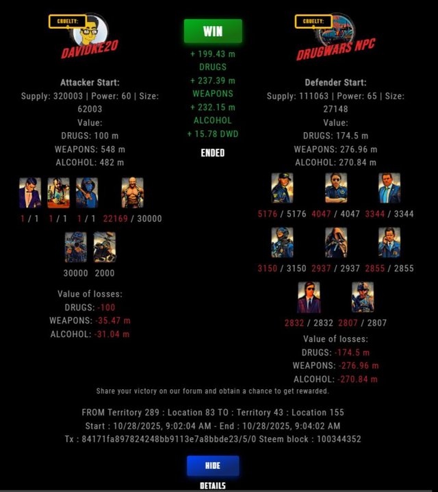 Check my latest fight ! davidke20 vs The Govermentdavidke20 (74)in DrugWars • 9 days ago #drugwars-fight #gaming #fight #dw