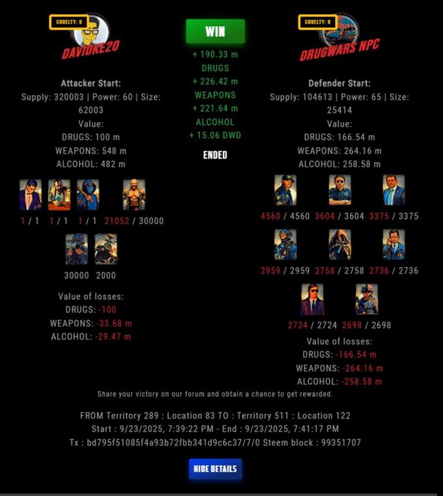 Check my latest fight ! davidke20 vs The Govermentdavidke20 (74)in DrugWars • 22 days ago #drugwars-fight #gaming #fight #dw