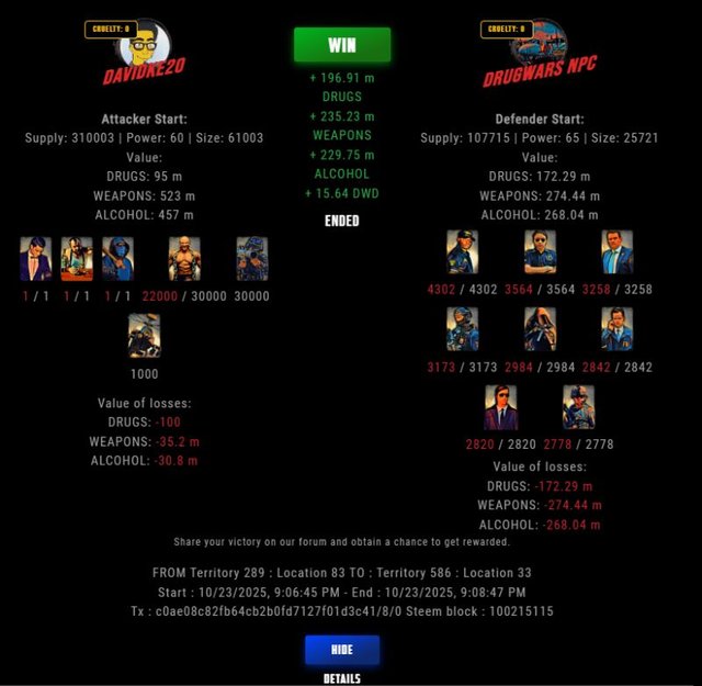 Check my latest fight ! davidke20 vs The Govermentdavidke20 (74)in DrugWars • 14 days ago #drugwars-fight #gaming #fight #dw