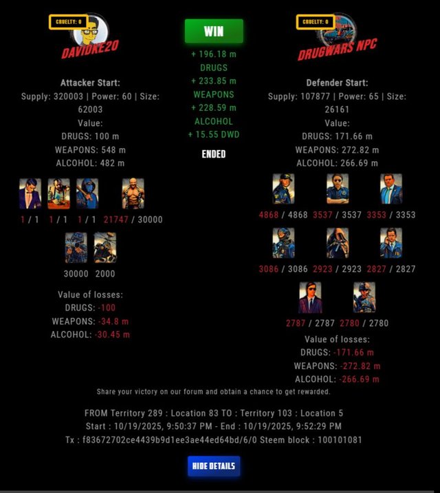 Check my latest fight ! davidke20 vs The Govermentdavidke20 (74)in DrugWars • 14 days ago #drugwars-fight #gaming #fight #dw