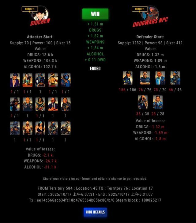 Check my latest fight ! diochen vs The Govermentdiochen (73)in DrugWars • 8 days ago #drugwars-fight #gaming #fight #dw