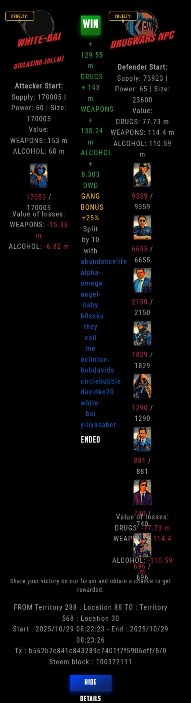 Check my latest fight ! white-bai vs The Govermentfly123 (63)in DrugWars • 10 days ago #drugwars-fight #gaming #fight #dw