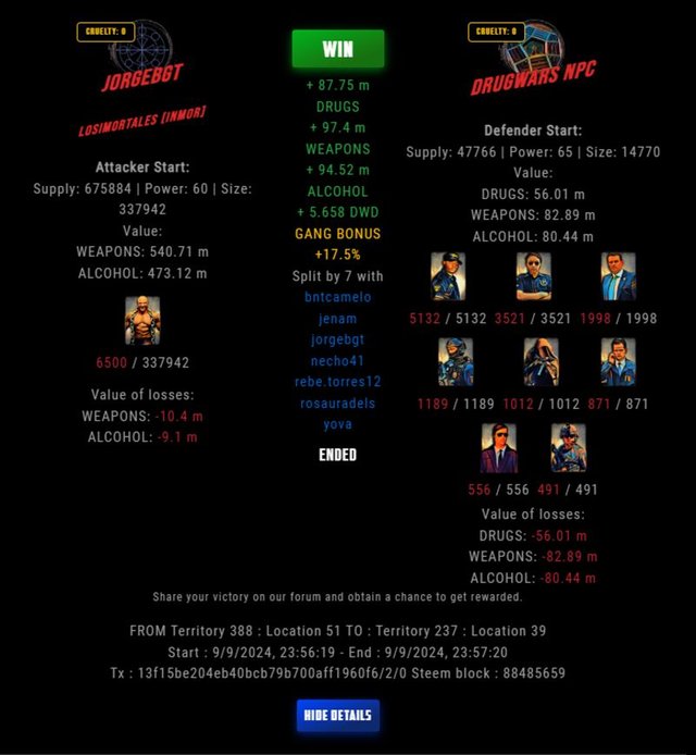 Check my latest fight ! jorgebgt vs The Govermentjenam (62)in DrugWars • last year #drugwars-fight #gaming #fight #dw
