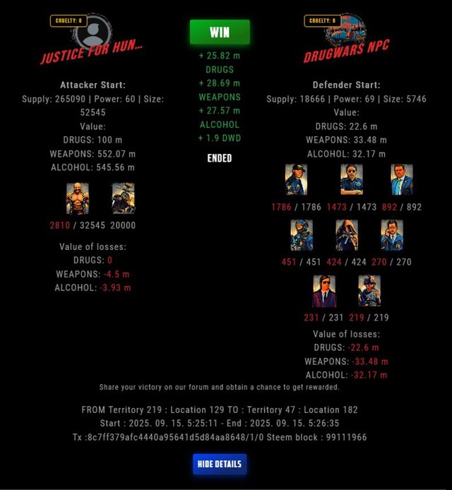 Check my latest fight ! justice for hungary vs The Govermentmonk2 (53)in DrugWars • last month #drugwars-fight #gaming #fight #dw