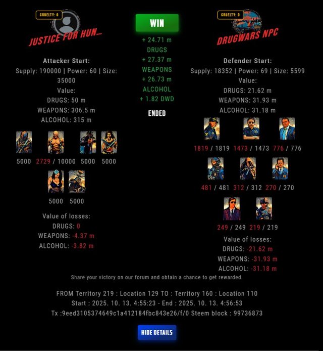 Check my latest fight ! justice for hungary vs The Govermentmonk2 (53)in DrugWars • 12 days ago #drugwars-fight #gaming #fight #dw
