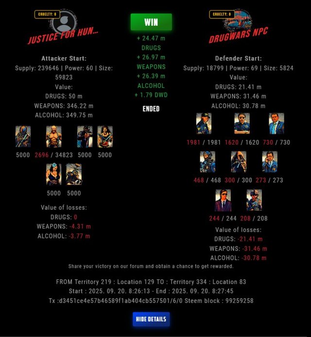 Check my latest fight ! justice for hungary vs The Govermentmonk2 (53)in DrugWars • last month #drugwars-fight #gaming #fight #dw