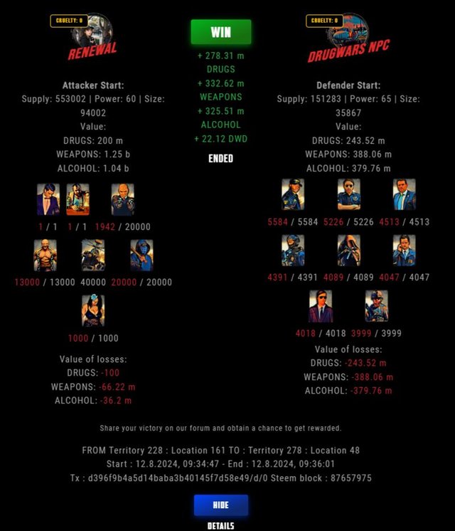 Congratulations @renewal ! Your fight received an upvote of 62% from the Dealer as incentive for your activity and as a gratitude for your support to the game.