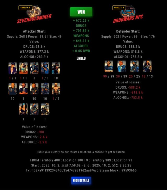 Check my latest fight ! sevengoldminer vs The Govermentsevengoldminer (65)in DrugWars • last month #drugwars-fight #gaming #fight #dw