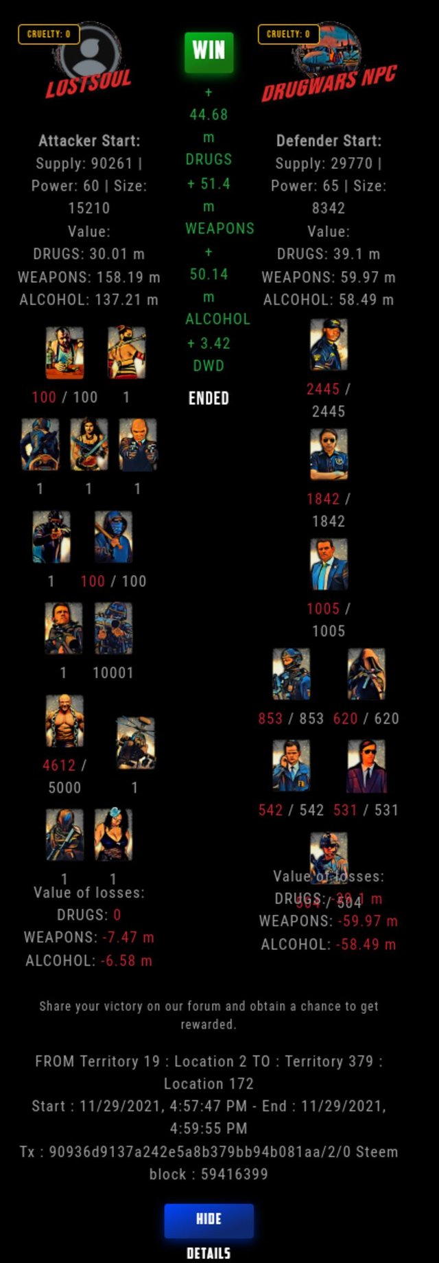 Check my latest fight ! lostsoul vs The Govermentstefannikolov (67)in DrugWars • 4 years ago #drugwars-fight #gaming #fight #dw