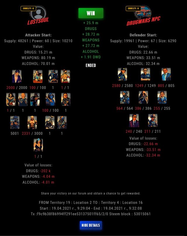 Check my latest fight ! lostsoul vs The Govermentstefannikolov (67)in DrugWars • 4 years ago #drugwars-fight #gaming #fight #dw