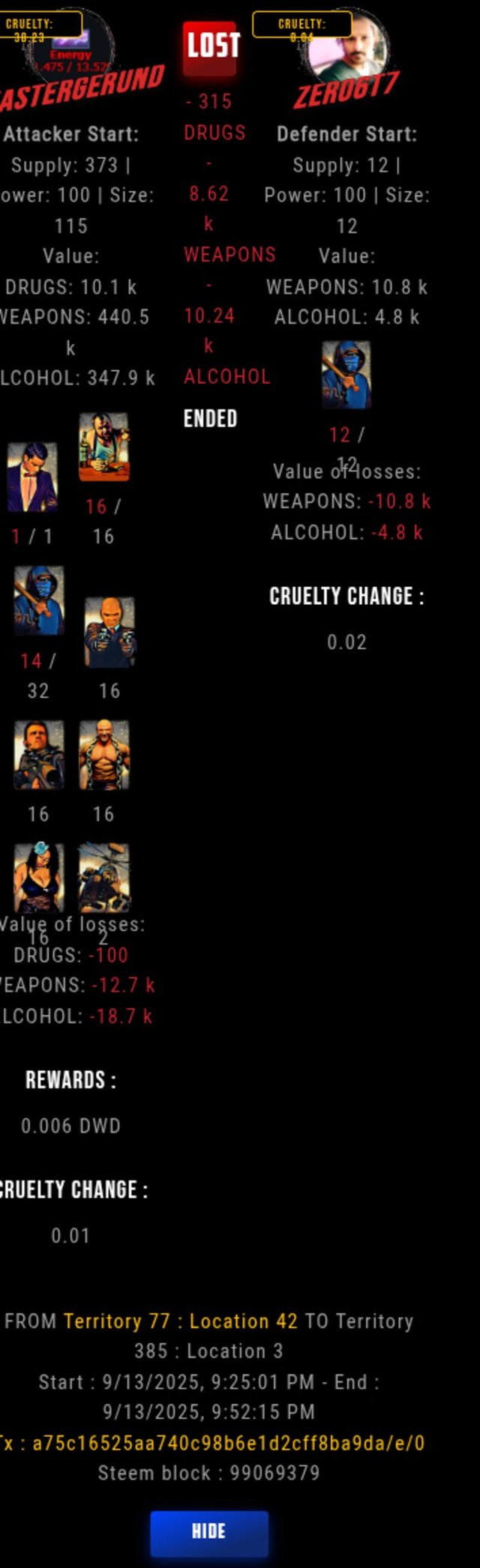 Check my latest fight ! mastergerund vs zero6t7zero6t7 (52)in DrugWars • last month #drugwars-fight #gaming #fight #dw