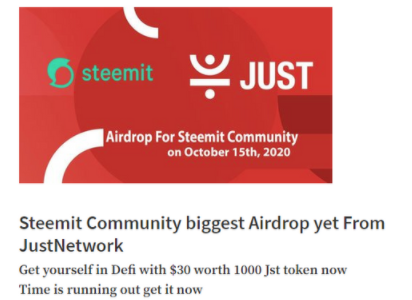 - Do not click these links. There are no airdrops officially announced by Just or Steem