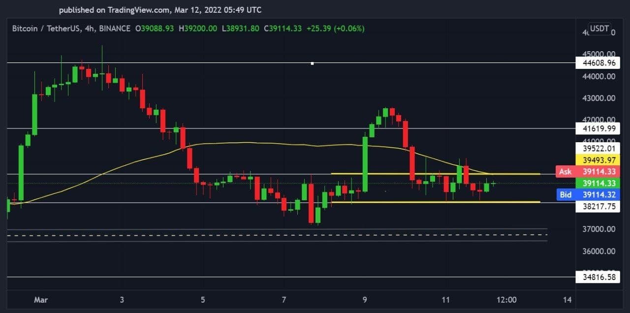 비트코인은 지지선인 38,200에서 정확히 반등하여 40,200달러 저항을 깨려고 했지만 거부되었습니다.