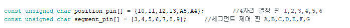 실제 프로그램을 가져와서 보니 FND를 제어하기 위해 연결된 선만 총 12개 입니다. 여기에 별도로 압력센서를 입력받기위한 선은 2가닥이구요.