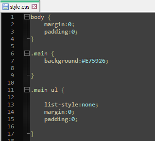 After that, I created a div and give the class name main. Then I create ul tag under that div. Also, I create 5 li tags under ul tag. And then I set a tag in all li tag. All the name I set in a -