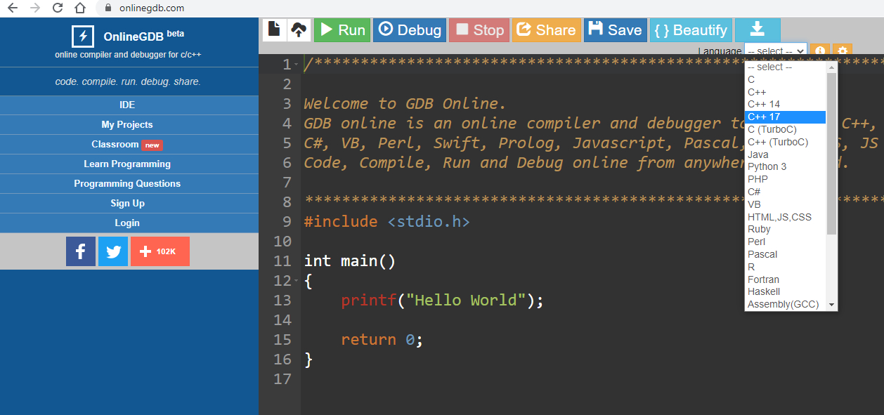 Now when I want to program I use the online environment https://www.onlinegdb.com/