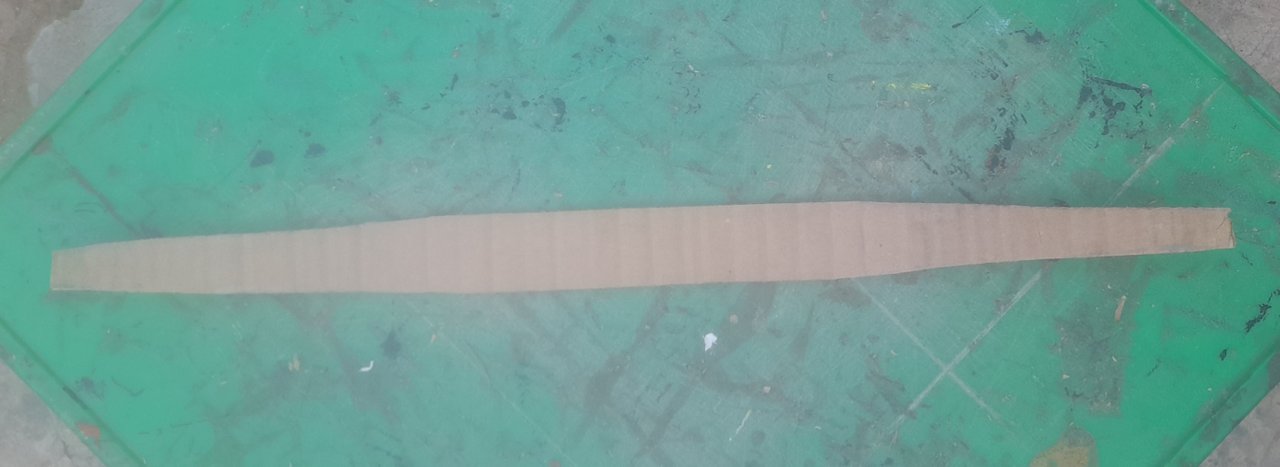 Here I measured and cut a carton of length 54cm and 4cm wide. I then trimmed both ends of the carton as shown in the figure below