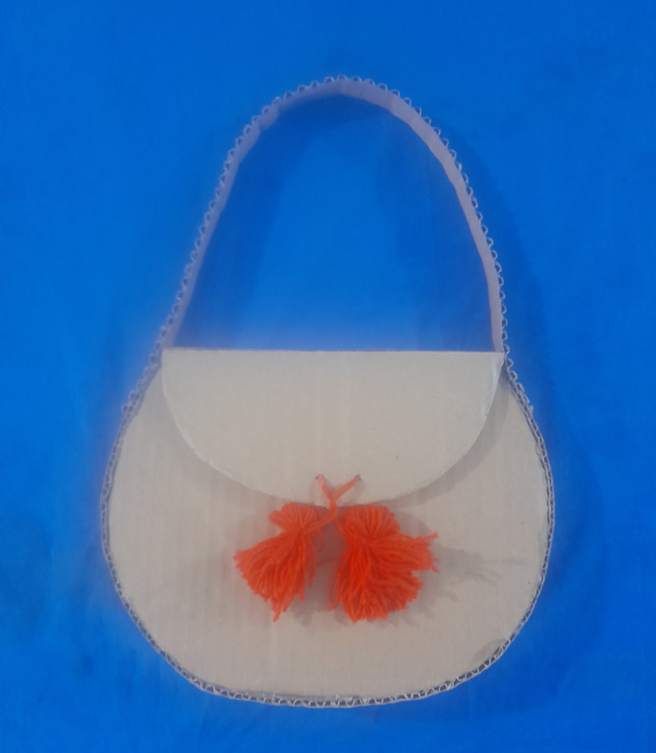 At this step, I fixed the hand of the bag. I measure a piece of a carton of length 24cm long and 1cm wide. I cut it out with scissors and peeled one side of the carton to have it fold easily. I then gummed it on the bag using Evostik gum.