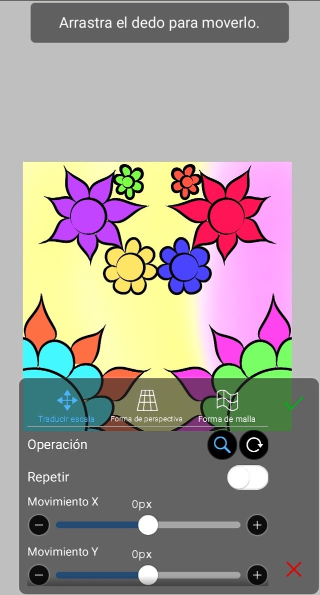 3. Move layer: This option allows you to move the size and modify the shape of the elements of the selected layer. It had been explained in a previous lesson, since it is repeated in two different parts of the application: