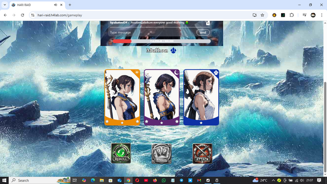 Each warrior gets one free credit every 24 hours to play. The outcome of this game is more probabilistic than deterministic. You enter the game from the lobby stage, summon three cards—and in all of this, you have no control, just like a dice game.