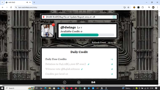 Once you open the game, it takes you to the home page. Here, you’ll see your Steemit username, game level, available credits, as well as your refresh count. There’s also a daily credit session. Some of this information keeps updating as you progress in the game and navigate other gaming commands.