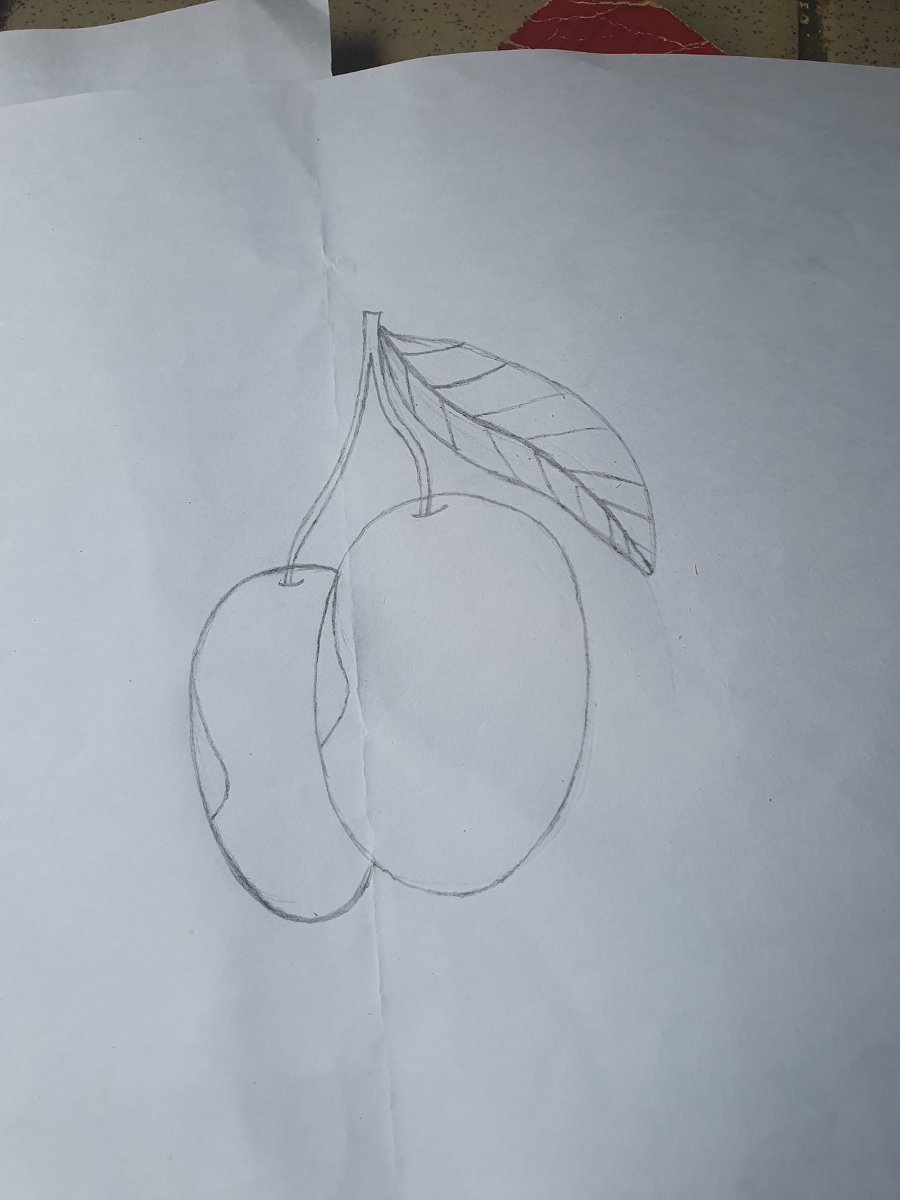Now I processed in drawing the small stick holding the both mangoes as you can see in the image and after that I now start drawing the leaf 🍃 and curve it very well.