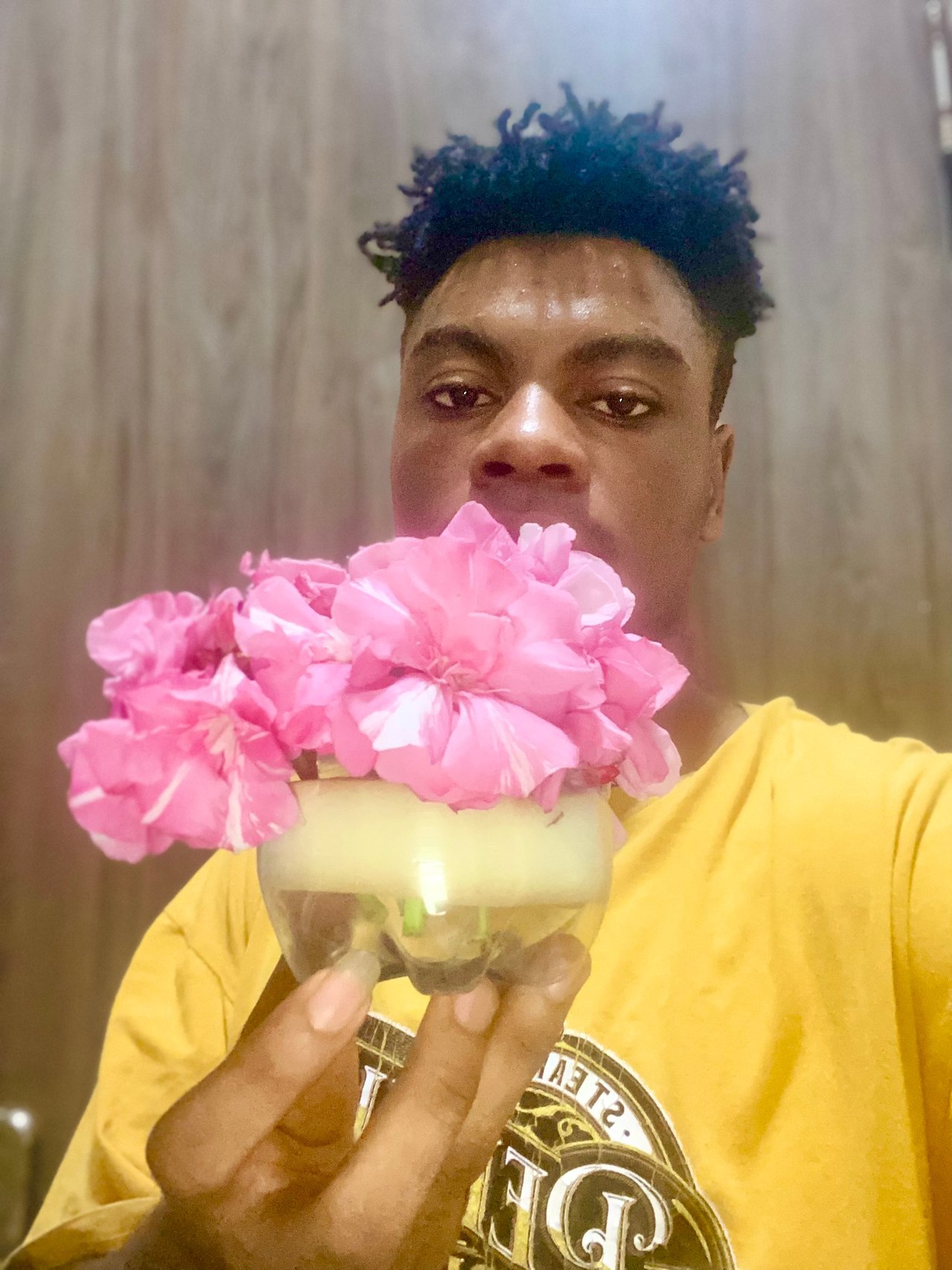 In terms of recycled materials i don't really focus on that because what i know best is drawing but I did a furnished flower using water bottle that was my first recycled project that i did and it turned out looking awesome actually it did not take me much time in doing it just with water bottle, flowers, scissors and a round foam as you can see below that's me holding the furnished flower that i made.